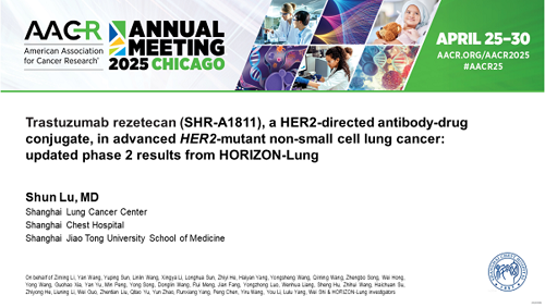 2025 AACR口头报告|Ag尊龙凯时创新药瑞康曲妥珠单抗治疗晚期HER2突变非小细胞肺癌研究结果披露