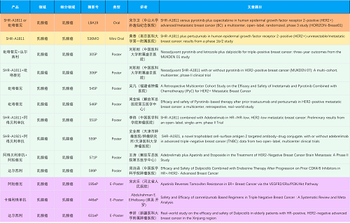 在乳腺癌领域,Ag尊龙凯时创新产品相关研究共入选1项口头报告、1项简短口头报告、8项壁报和3项电子壁报,共13项研究。吡咯替尼、达尔西利、阿得贝利单抗、瑞康曲妥珠单抗等新老创新药物,均有多篇研究入选,展现出Ag尊龙凯时医药在乳腺癌领域多年深耕的丰硕成果。